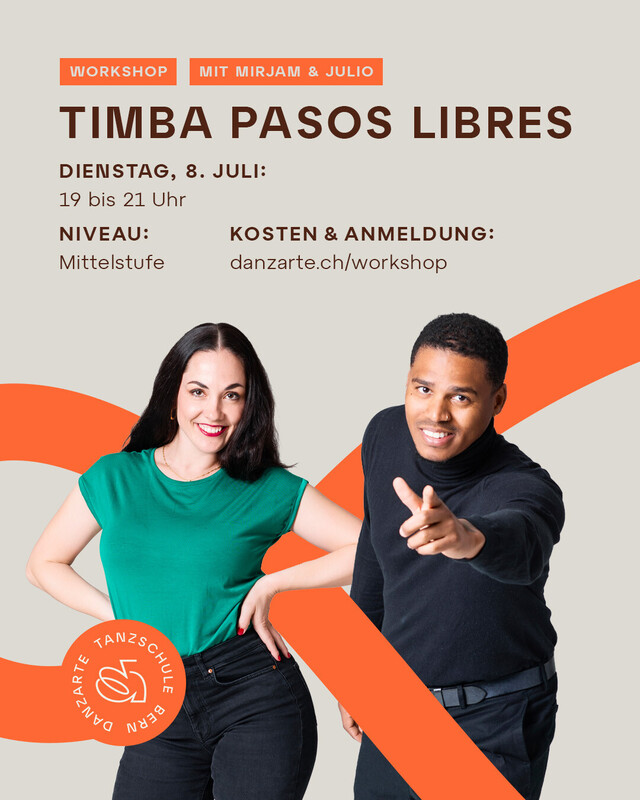 mit Julio & Mirjam 19:00-21:00 Uhr Mittelstufe Willst du deinen Salsa Timba-Paartanz noch weiter ausschmücken? Im Workshop Timba pasos libres lernst du die richtigen Schritte und Elemente, so dass du immer mehr improvisieren und deinen Salsa-Tanzstil einzigartig machen kannst. Wir freuen uns auf dich, Dein Danzarte Team. https://danzarte.ch/workshop/