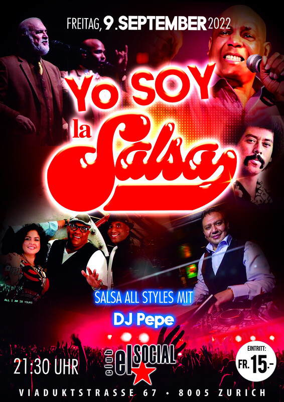 YO SOY LA SALSA! Freitag, 9. September 2022 An unserer Party treffen sich die besten Tänzer der Stadt! Wir freuen uns auf zahlreiche Gäste! Türöffnung: 21:30 Uhr Eintritt: Fr. 15.- SALSA ALL STYLES mit DJ Pepe den ganzen Abend! HASTA LA PISTA BABYS!