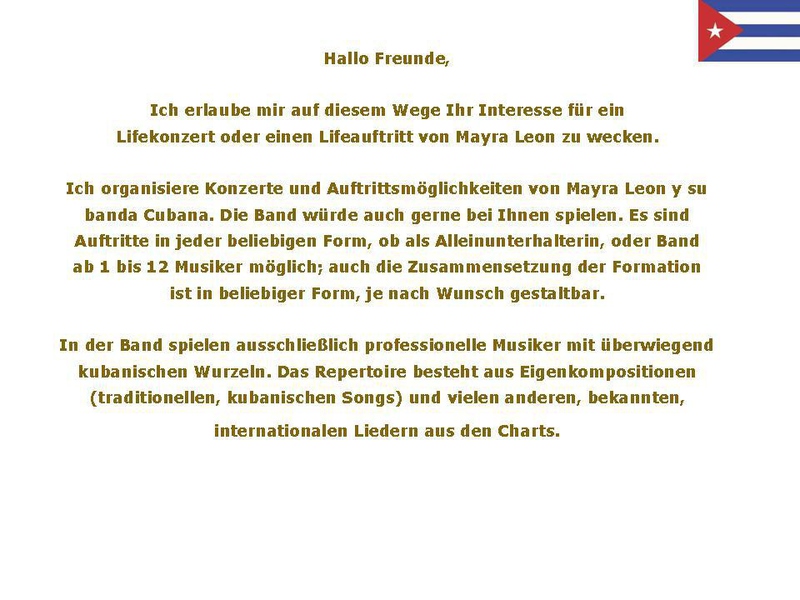 Mayra León y Su Banda Cubana Live Music Veranstaltungen alle Art https://www.facebook.com/mayraleoncom