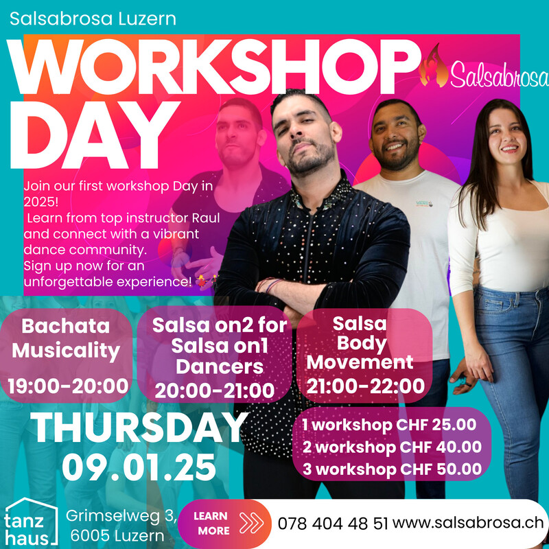 Grimselweg 3, 6005 Luzern Luzern Raúl J. Alvarenga Salsa und Bachata Workshop Day Share on Facebook Eventos