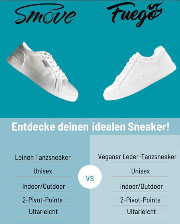 Unser neuer Sommer Dance Sneaker, SMOVE by Dancing Queens, begeistert mit seinem bequemen, gepolsterten Fußbett. Das Besondere an diesem Schuh ist, dass er aus atmungsaktivem Leinen hergestellt wird, was lästiges Schwitzen verhindert. Möchtest du einen leichten Sommersneaker? Dann ist der SMOVE Tanzsneaker ideal für dich! Als Dankeschön für deine Treue schenken wir dir mit dem Code SMOVENEW 10.- Rabatt auf deine Bestellung.