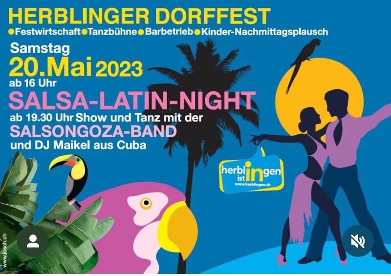Am 20. Mai 2023 spielt SALSONGOZA, The Latin Band mit primaveraler Frische am HERBLINGER DORFFEST, Festzelt Schlossstrasse 15, 8207 Herblingen