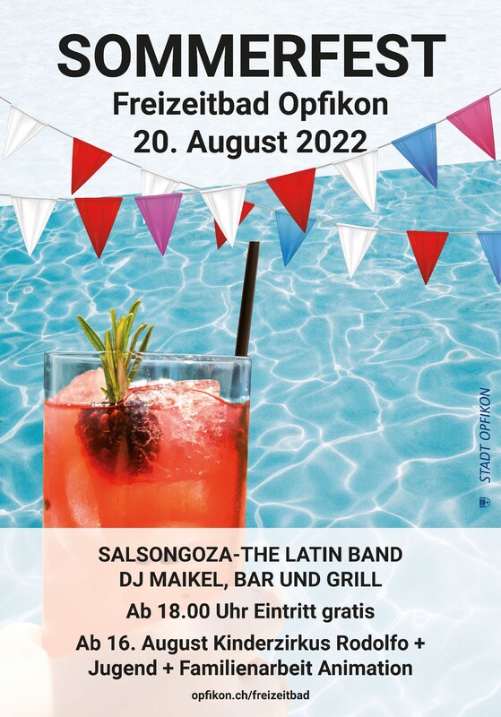 El sàbado, 20.08.2022, a partir de las 19:00 horas tocaremos con SALSONGOZA, The Latin Band en el SOMMERFEST im Freizeitbad Opfikon!