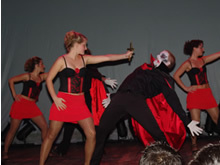 Il était un peu plus tard que minuit quand Juan Silva, l'organisateur de la fête, annonçait les nouvelles chorégraphies. L'audience a fait une petite pause pour pouvoir assister au joli spectacle offert par le groupe "Sabor latino" en premier lieu et le groupe "Teresa D`orighia" après. Ce dernier était composé par 4 femmes bien belles, aux vêtements très voluptueux, lesquelles ont beaucoup amusé le public grâce à leur "lady style". Mais le moment le plus attendu de la nuit a été la première de Salsa Power. Cette présentation a été vraiment extraordinaire, étant donné qu'il y avait 30 personnes sur scène, quelques-uns d'entre eux déguisés en morts, d'autres en momies et d'autres en plusieurs Dracula affamés. Un show inattendu qui a réussi à gagner l'ovation du public, qui ne devenait pas fatigué de les applaudir pendant de longues minutes.