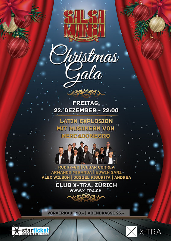 SALSAMANIA, die seit über 18 Jahren wöchentliche Nr. 1 Tanzparty der Schweiz in der Location X-TRA, lädt alle tanzfreudige Gäste von nah und fern zur jährlichen SALSAMANIA - CHRISTMAS GALA. Eine edle Gala-Tanznacht, ausnahmsweise an einem Freitag, ganz im Zeichen des Latin Paar-Tanzes, der besten Latin Music und künstlerischen Verrücktheiten.