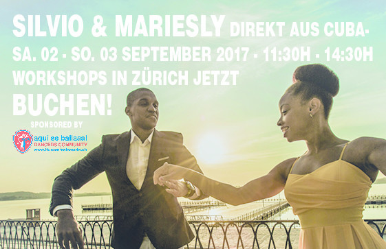 Silvio und Mariesly sind zwei erfahrene Profi-Tanzlehrer direkt aus Habana, Cuba und werden voraussichtlich vom 12. August 2017 bis am Freitag, 16. September 2017 hier in der Schweiz sein. Sie unterrichten mit Freude seit mehreren Jahren erfolgreich in eine der bekanntesten Salsa Tanzschulen in Havanna. Beide haben an grossen Salsa Kongressen in Italien und an den International Cuban Dance Festivals – Ritmo Cuba in Havana mitgewirkt. Silvio hat bereits Unterrichtserfahrung in Europa gesammelt und in Tanzschulen in München und Hamburg unterrichtet.