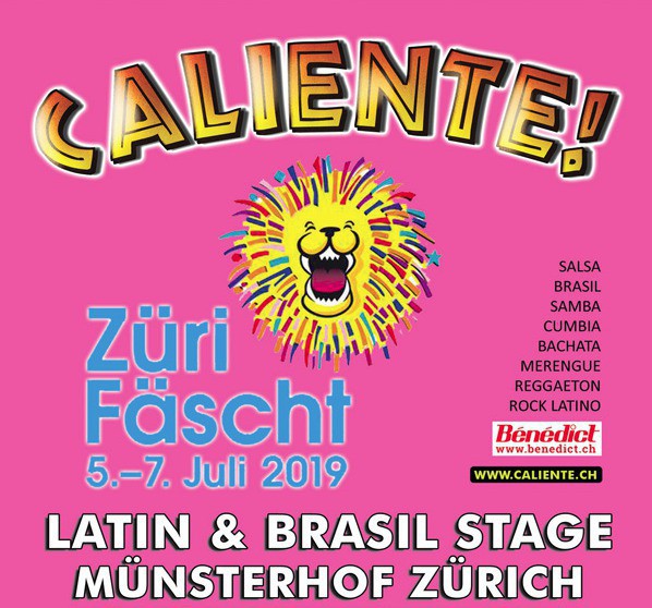 Escolas de Samba werden trommelnd durch das schöne Gelände direkt bei der Limmat ziehen. Nirgendwo am gigantischen Züri Fäscht rund ums Seebecken und in der Zürcher Altstadt wird es heisser und das breite Spektrum der Latin Music so gut abgedeckt wie auf der Caliente!-Bühne vor der Fraumünsterkirche. Das Züri Fäscht erwartet rund zweieinhalb Millionen Festfreudige.