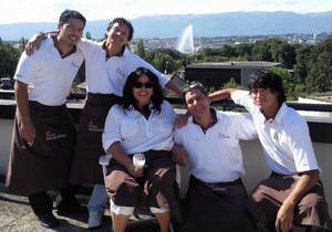 Efectivamente, somos 9 hermanos todos casados por consiguiente muchos sobrinos, todos de diferentes profesiones que no tienen nada que ver con la gastronomía, pero todos nos apoyamos. El arquitecto realiza los cambios del look del restaurant, la diseñadora decora los eventos y los platos, el informático realiza los flyers, la importadora trae los insumos, el contador lleva las cuentas , el relacionista public hace los contactos, etc. Mis sobrinos e hijas me apoyan en sus horas libres pues no deben de dejar de lado sus estudios. Y yo soy la encargada totalmente de la organizaciòn de la cocina, donde tambien cocino y cuento con personas super capacitadas entre ellos Gerald Menoud - suizo que viviò con nosotros en Perú 10 años, Alejandro Laborato – argentino y Evelyn Silva - nicaraguense, los que me apoyan muchisimo lo cual les estoy muy agradecida. Como tambien en el aspecto artistico contamos con Cuto Olaya con su música salsa, cumbia, bachata etc y una voz femenina que canta música criolla, se llama Arlene. Ellos también nos acompañan a las giras y todos los viernes en el Restaurante Pachacamac de Ginebra.