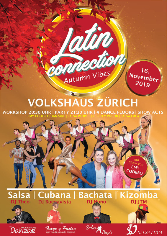 Am Samstag, 16. November 2019 findet die Latin Connection im begehrten Partylokal Volkshaus am Helvetiaplatz statt. Ihr seid herzlichst eingeladen um einen wundervollen Abend auf der Tanzflache oder an Baar zu verbringen. Selbstverständlich sind auch Neugierige willkommen die einfach nur zuschauen möchten oder in Gesellschaft von passionierten Tänzer und Tänzerinnen das einladende Ambiente mit toller karibischen Musik mitten in der Stadt Zürich geniessen wollen.