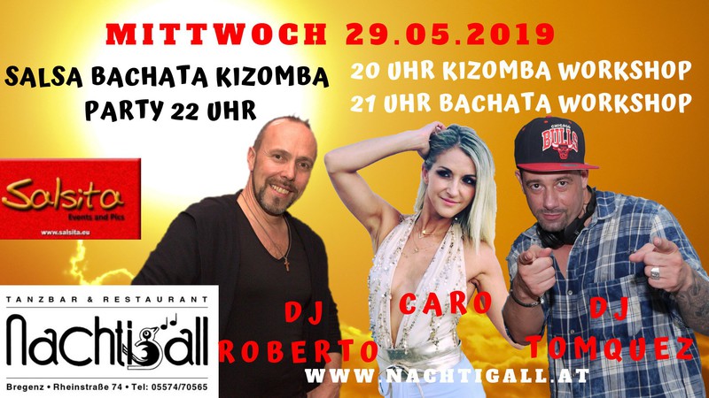 Nachtigall Bregenz ist für euch am Mittwoch ganz im Motto Salsa Bachata Kizomba Tanzen & feiern eingestellt. Vorab könnt ihr mit Salsa Energie Ulm an Workshops in Kizomba und Bachata teilnehmen.