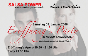 An der Walchestrasse 34 in 8001 Zürich wird ab Januar 2008 die neue Salsa Power Tanzschule, die mit viel Leidenschaft und Herzblut umgebaut und eingerichtet wurde, in einem neuen Ambiente erstrahlen.