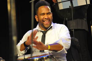 Edwin Sanz ist ein unglaublich vielseitiger Musiker. Mühelos spielt er Congas, Timbales, Bongo, Schlagzeug, Cajon, Djembe und vieles mehr.
